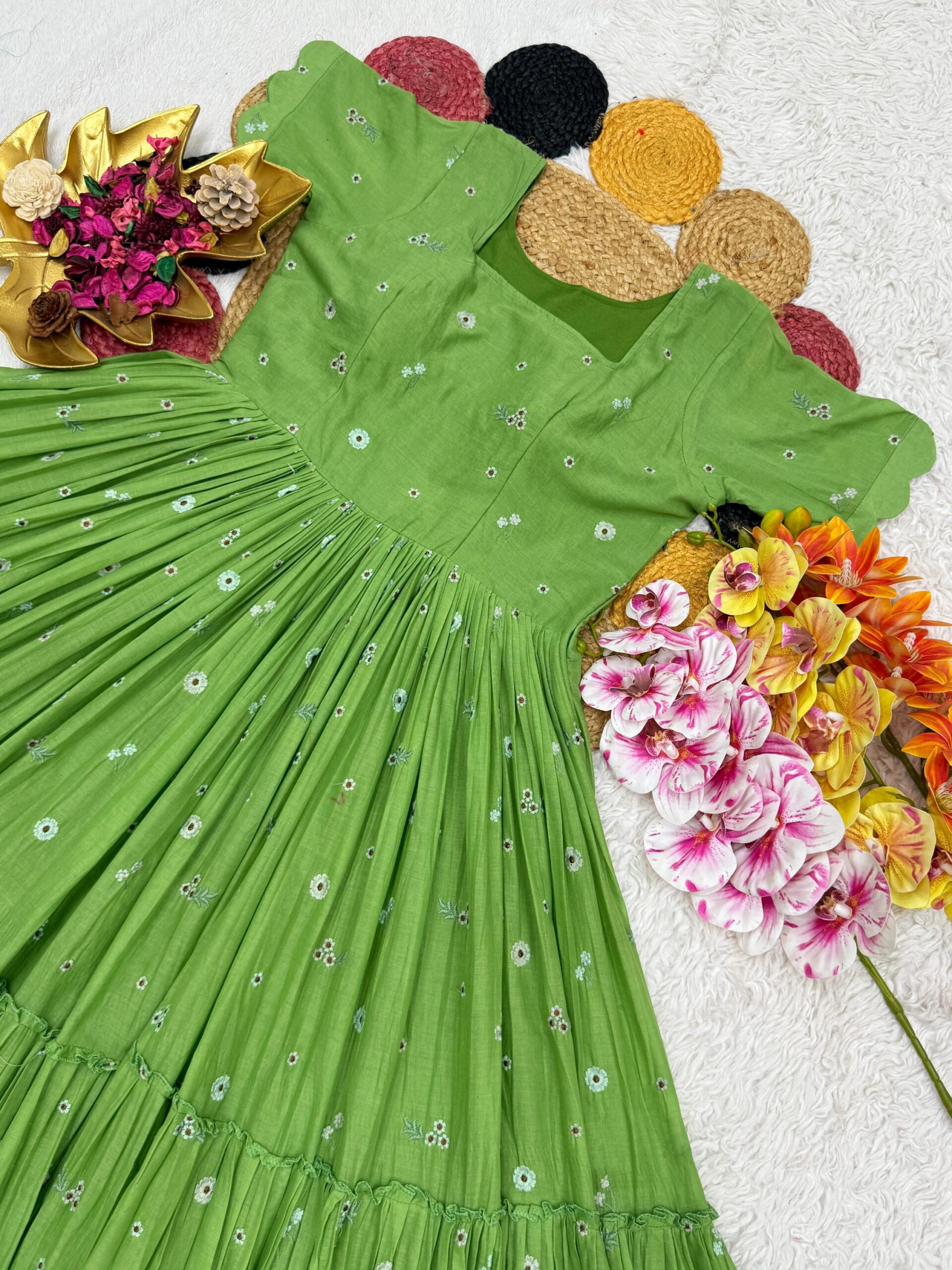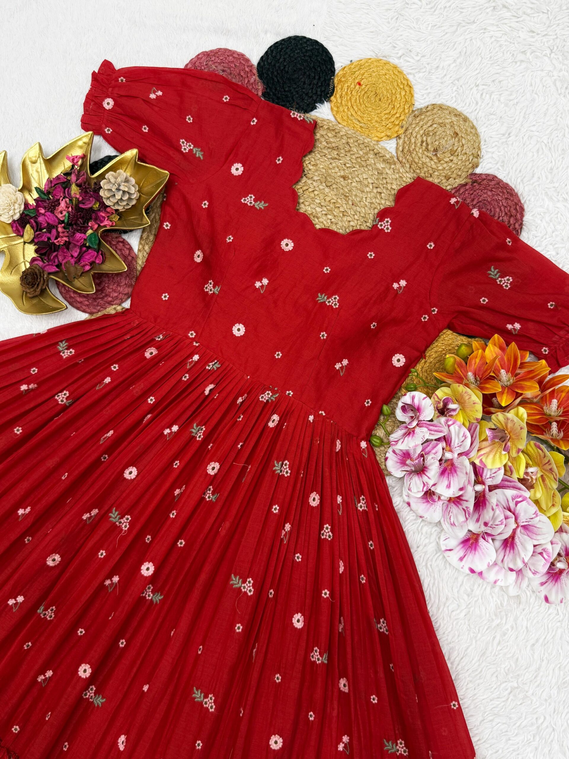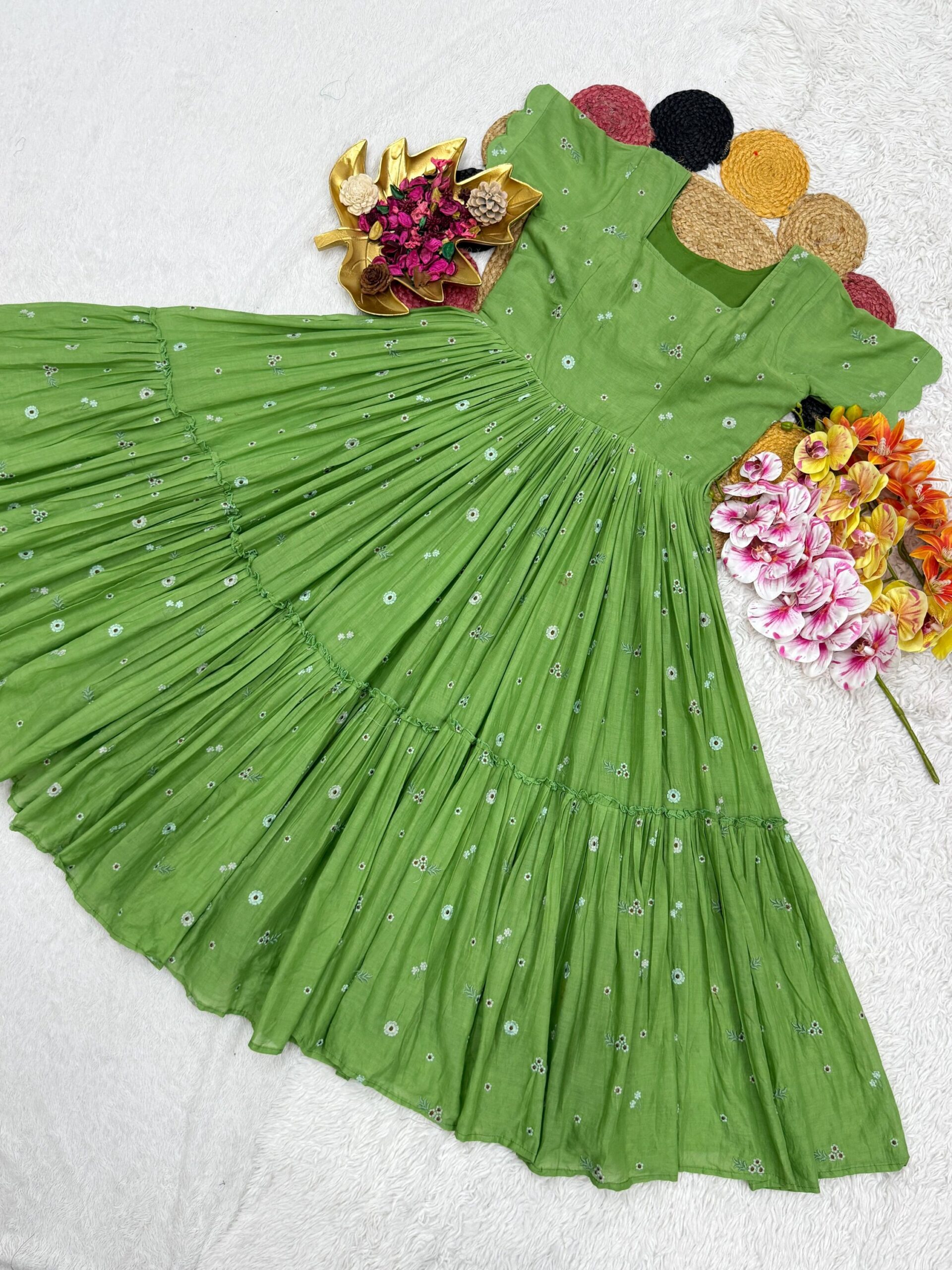 ✨ *Launching Our Latest Summer Special Mull Chanderi Gown With Floral Thread Work – Where Elegance Meets Comfort! ✨*