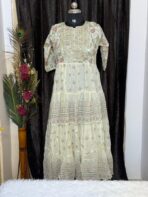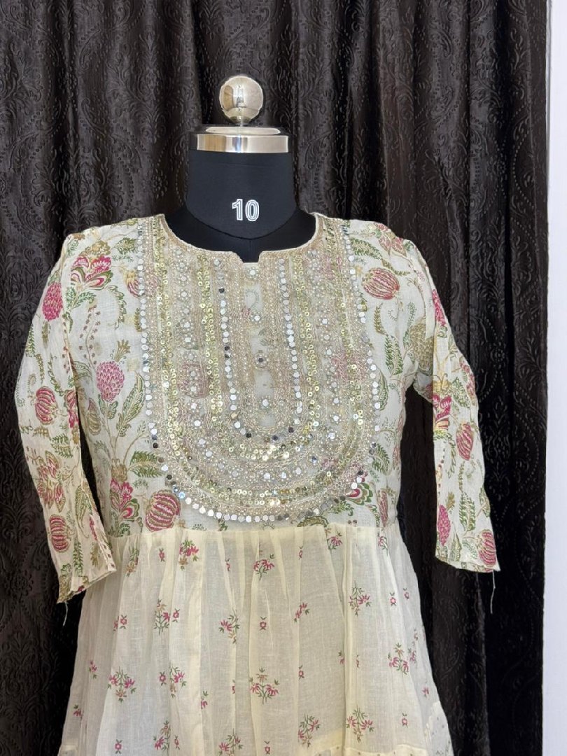 Yoke pattern with pearl and mirror work to enhance the look and feel