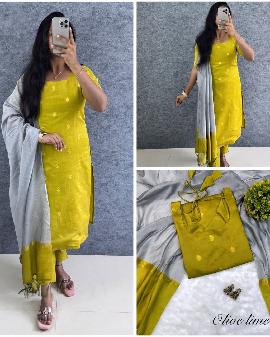 Exclusive arrival Launching 3piece set ethinicwear outfit🥰 Elevate your style with this stunning pure silk cotton Kurti set with beautiful zari butta work and beautiful contrast zari weaving dupatta and same silk cotton pant ..This is perfect upcoming deewali and festival wear Fabric: premium Quality silk cotton Pant: silk cotton fabric (Kurti+pant+dupatta) Size: S to xxl Kurti length: 43 inches Dupatta: 2.25mtrs Complete creape lining