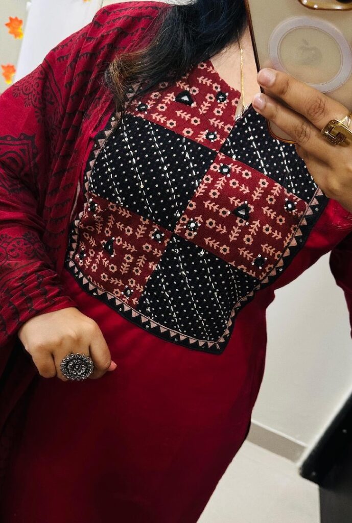 Designer Mughal Theme in Idaho style Floral Kali Kurti Pant dupatta set in *Premium fine Cotton Fabric* with badla adda work on yoke and side fashion tassels giving gorgeous look… 💥💥