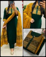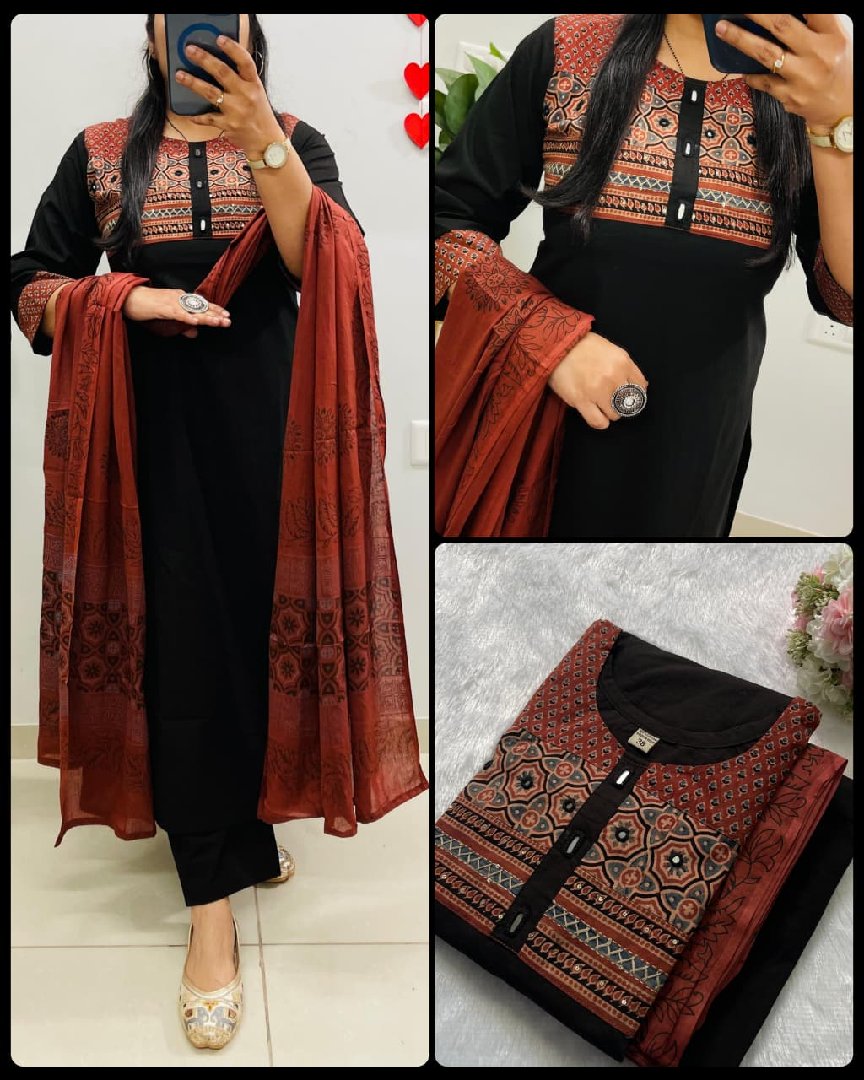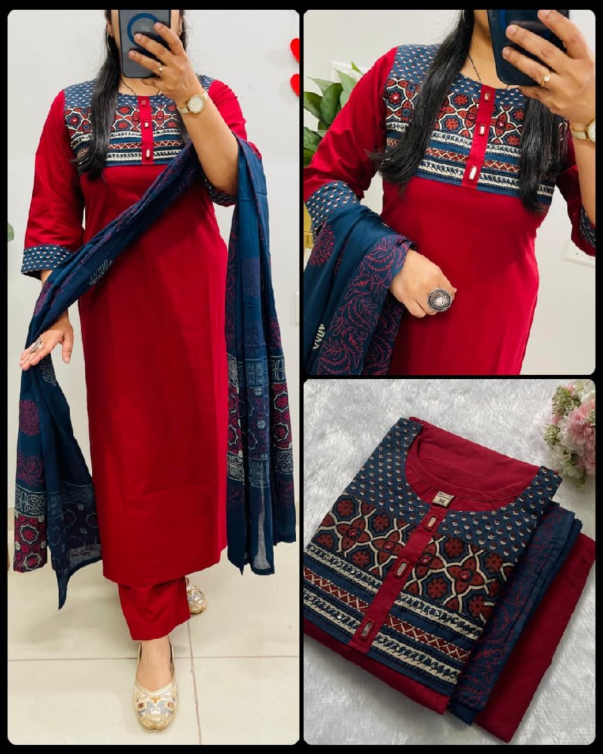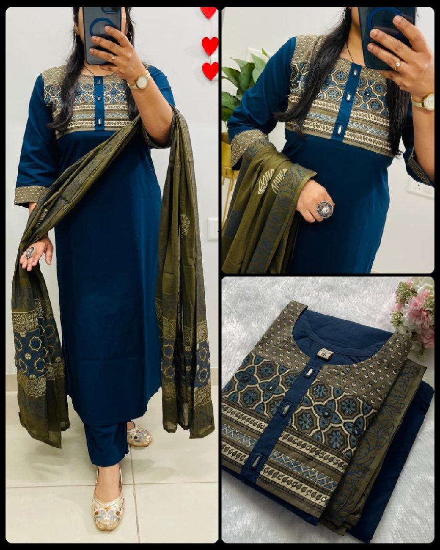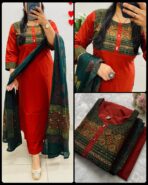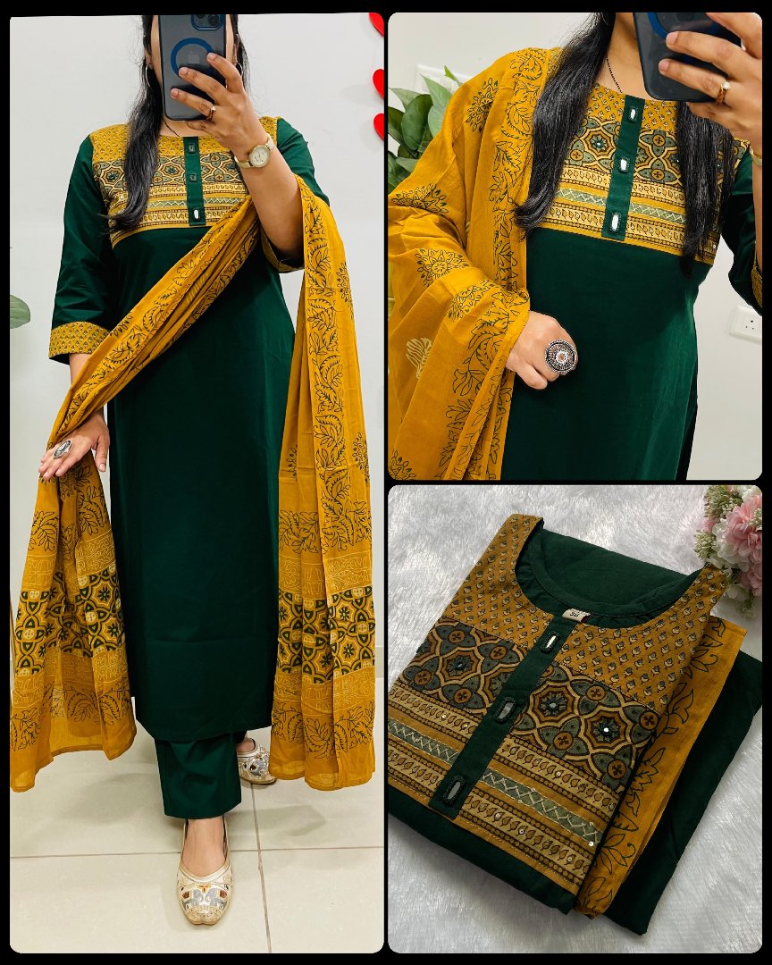 Stylish Ethnic Kurti Pant with *Cotton Dupatta* Set in Rich Dhabu cotton fabric with *Applique & Real mirror* work & Detailingss… 🌹🌹