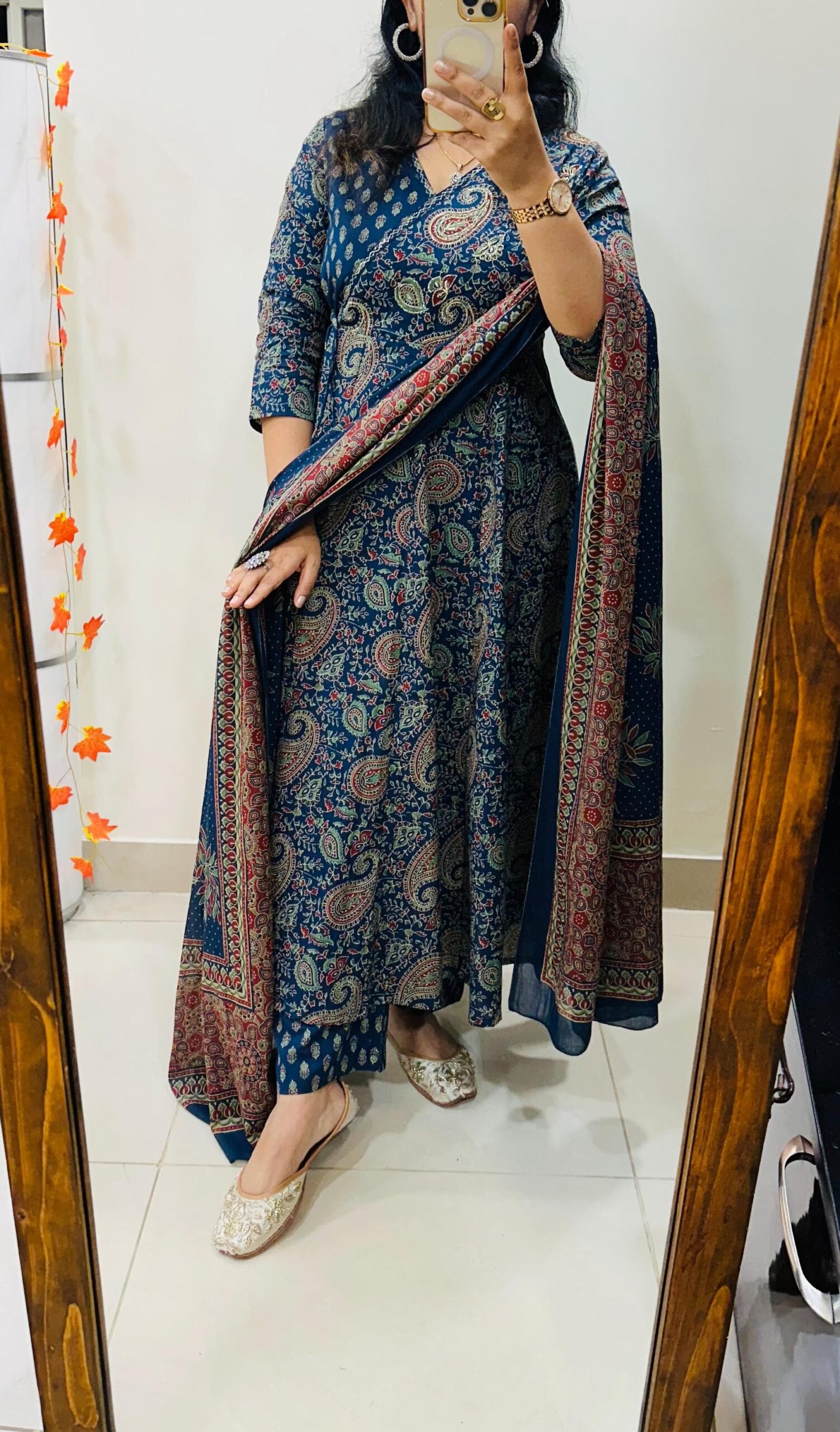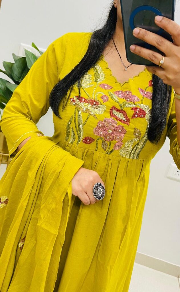 Designer Mughal Theme in Idaho style Floral Kali Kurti Pant dupatta set in *Premium fine Cotton Fabric* with badla adda work on yoke and side fashion tassels giving gorgeous look… 💥💥