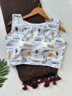 Saree with Printed Halter Neck Blouse