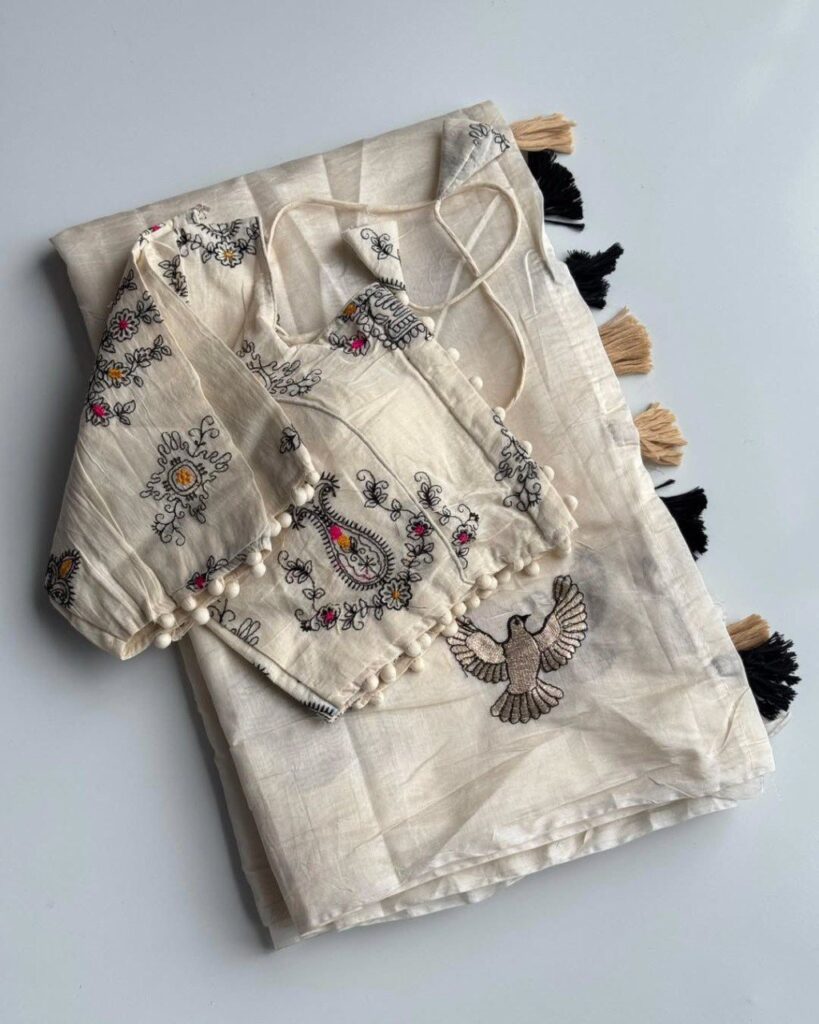 *FASHION PRESENTING ORIGINAL KHADI COTTON COLLAR NECK BLOUSE WITH KHADI COTTON SAREE*