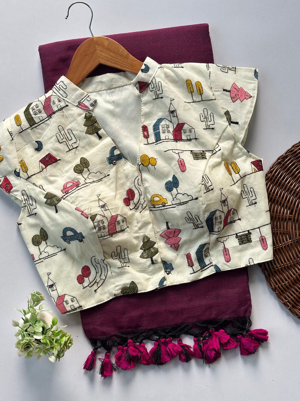 Stitched blouse with Khadi Cotton Sarees along with Ginni