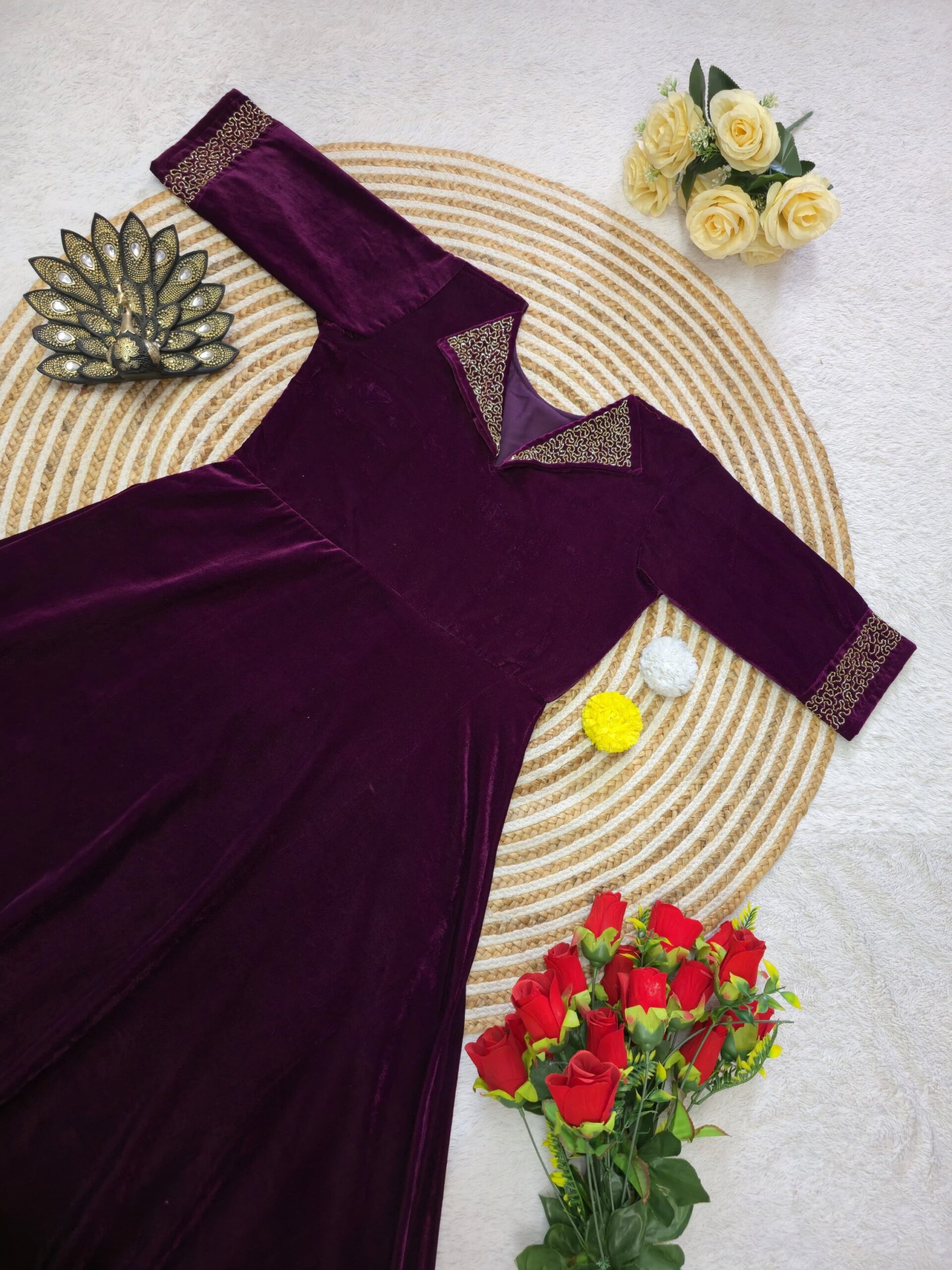 *Premium 9000 Velvet Fabric with Designer Hand work Gown- A Beautiful Blend Of elegance and Floral Charm For This Wedding and festival.*
