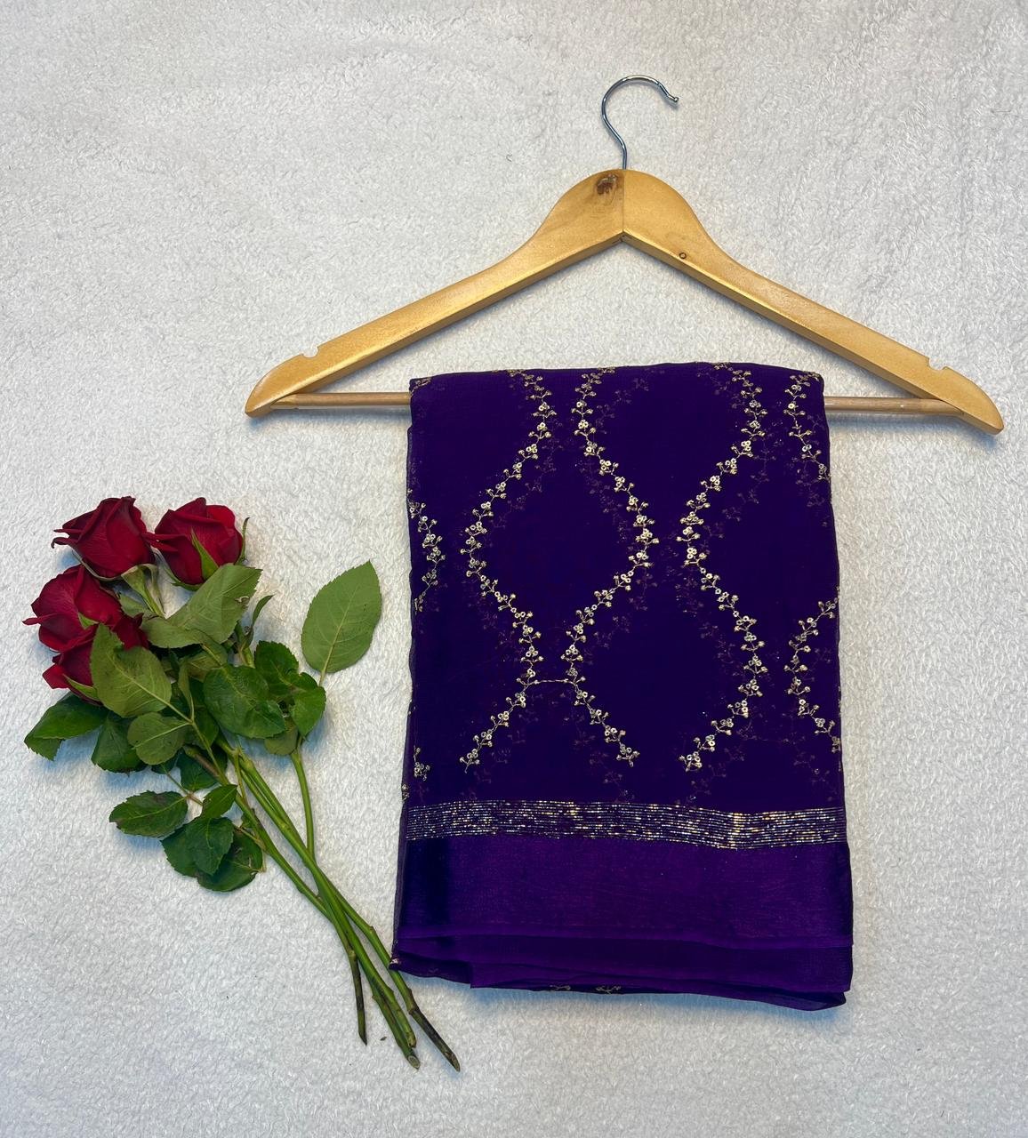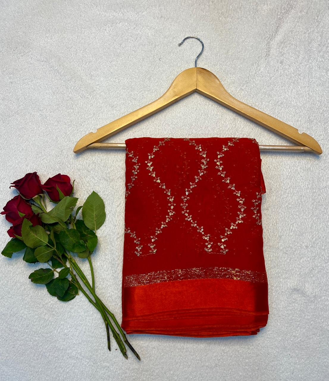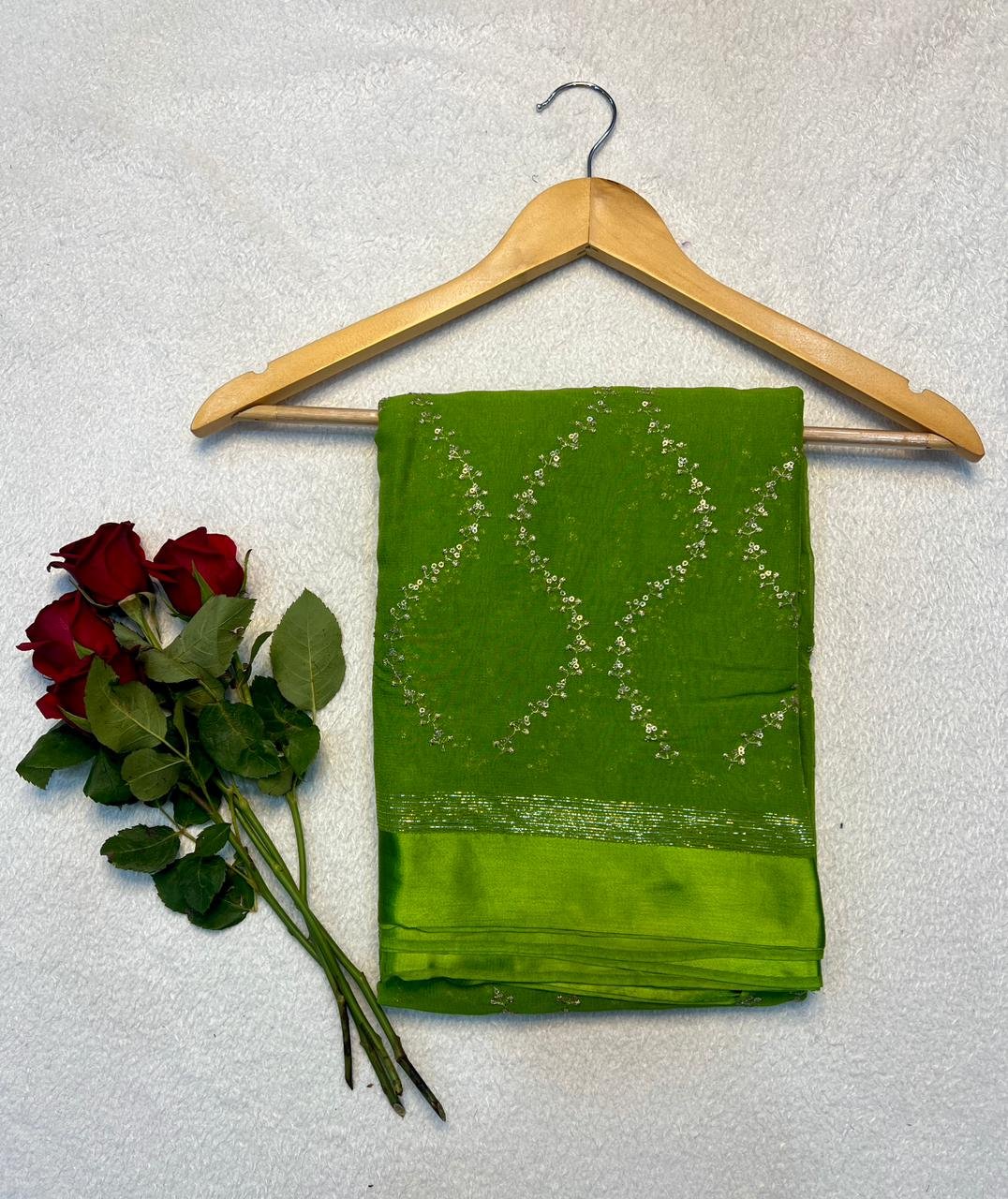 _Fabric – Pure Viscose Georgette Sattin Patta With Lahriya Concept Sequins & Thread 🧵 Embroidery Work Saree With Fancy Zari & Fancy Jacquard Satin Border With Fancy Work Blouse 👚_