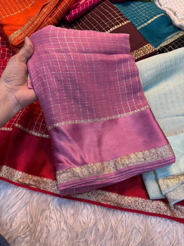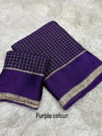 Experience the elegance of pure viscose georgette with intricate small chex weaving and a stunning satin patta border perfect for any occasion this saree exudes sophisticated and style